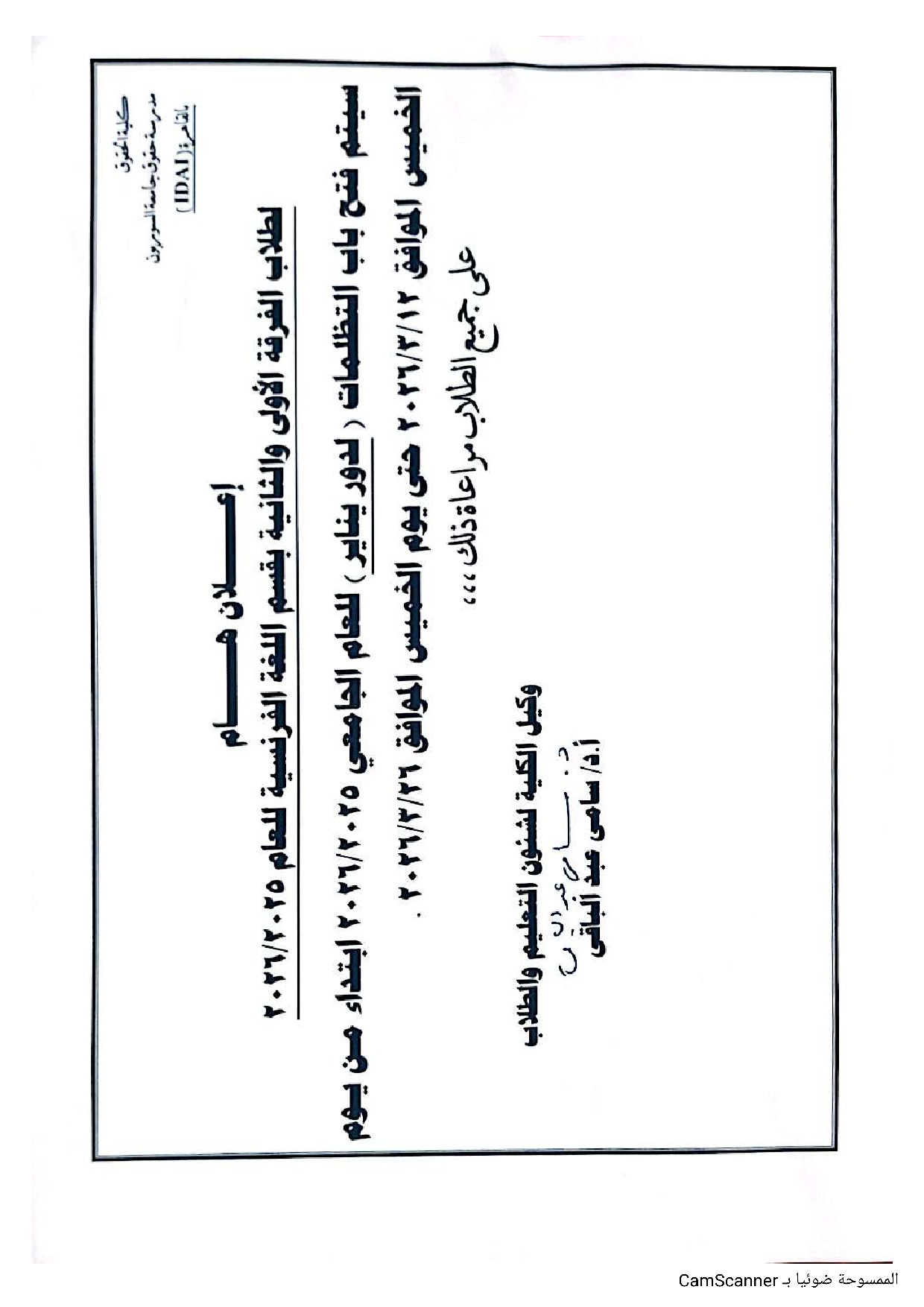 الرئيسية فتح باب التظلمات للفرقة الاولى والثانية قسم الفرنسي