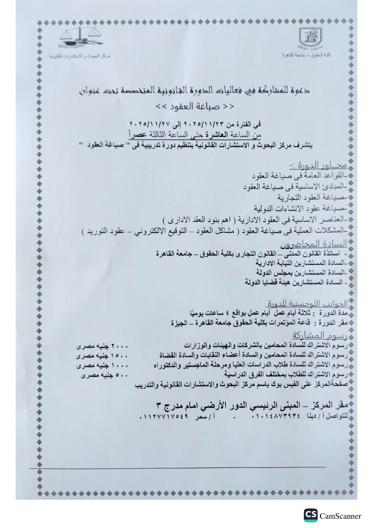 الرئيسية دعوة للمشاركة في فعاليات الدورة القانونية المتخصصة تحت عنوان "صياغة العقود" في الفترة من 23-11 الى 27-11